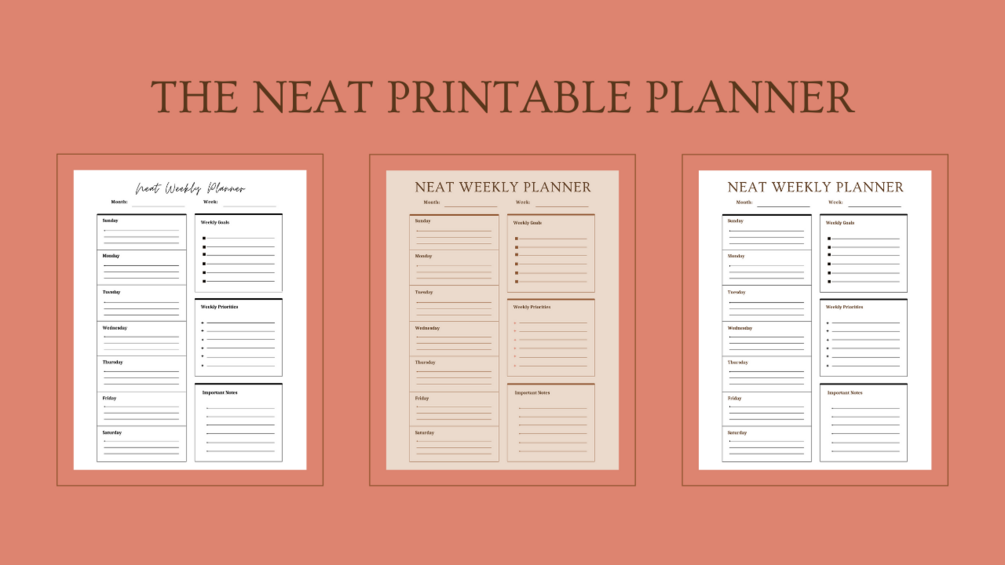 This printable weekly planner is available in 2 font styles, and 2 colours (white and light pink)